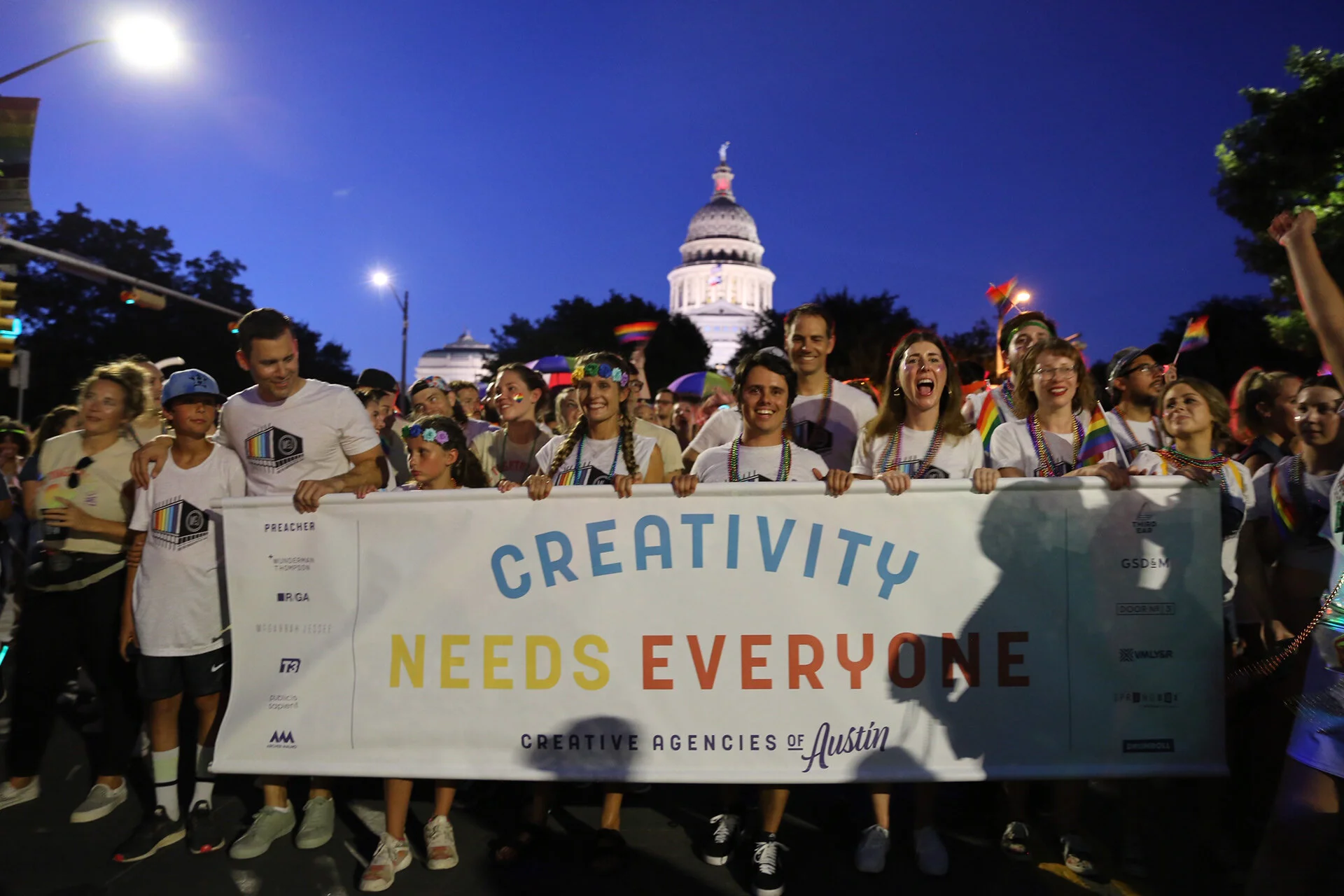 Creativity Needs Everyone was a collaboration, organized by McGarrah Jessee, with creative agencies of Austin where 400+ friends and allies of LGBTQIA+ came together to make strides for love in the 2019 Austin Pride Parade.